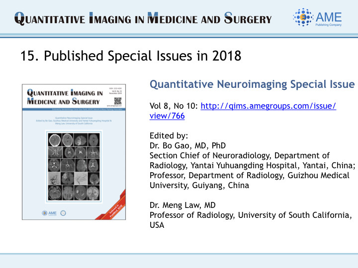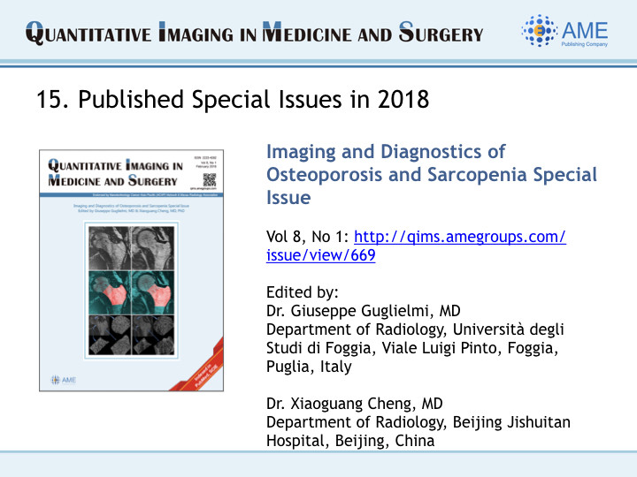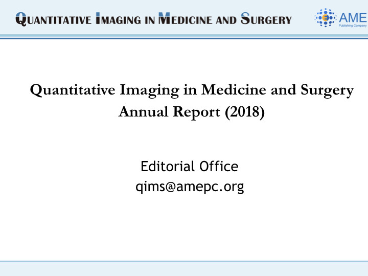 We are pleased to share the 2018 Annual Report of Quantitative Imaging in Medicine and Surgery here.