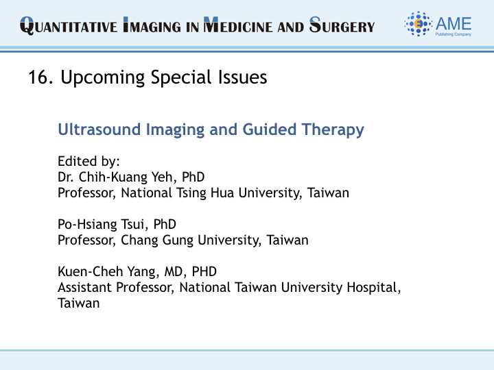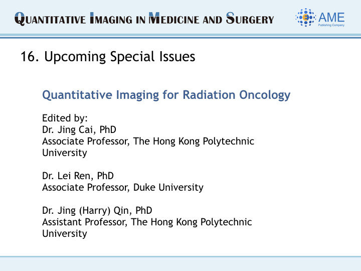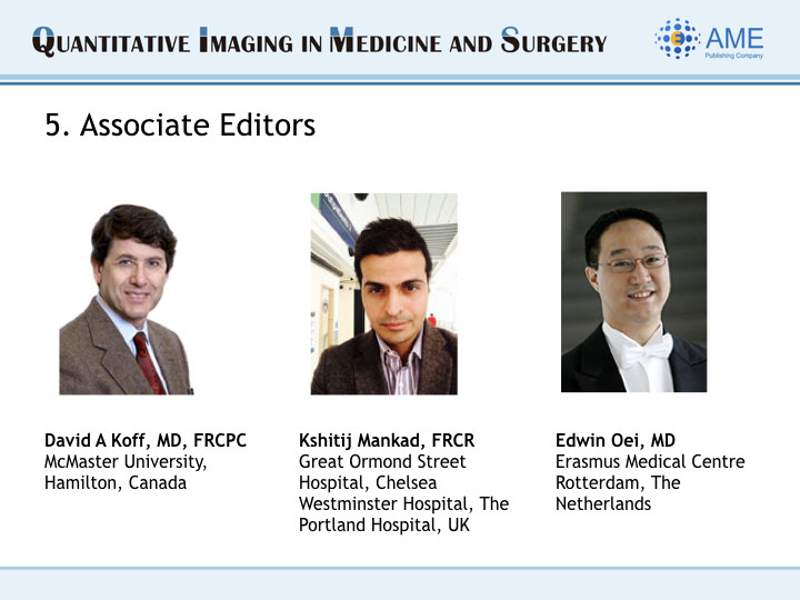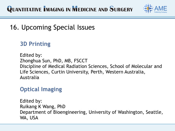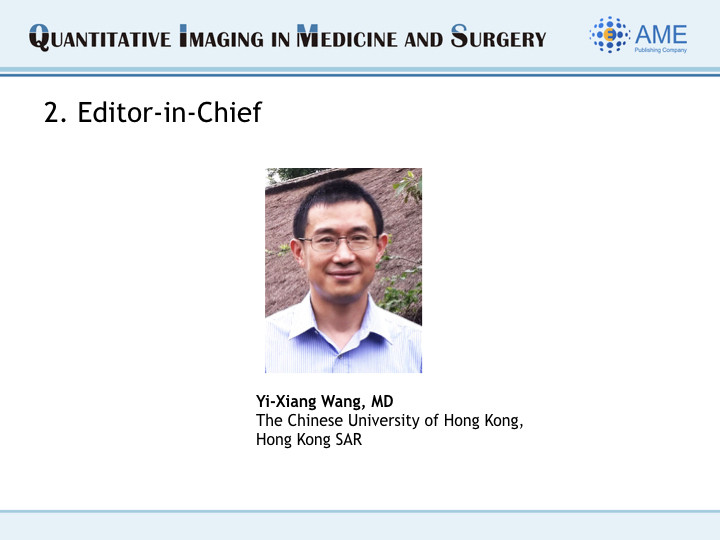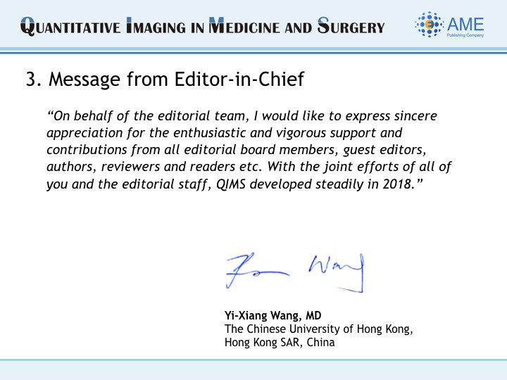 Greetings from Editor-in-Chief and Editorial Office of QIMS!