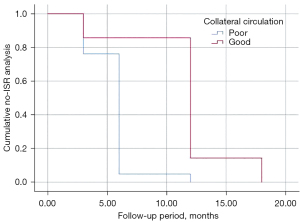 | Poor collateral circulation | 2.15 | 8.61 (2.12–34.94) | 0.003 |