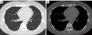 There are some caveats to our case study. Disadvantages of transthoracic needle insertion include higher associated risks of pneumothorax, bleeding, and (rarely) broncho/alveolar-pleural fistula (11). Despite the safety of operating in the operating room and endotracheal intubation, localization failure or complications may have a negative effect on surgical outcomes. Therefore, we recommend that this procedure be performed by a chest surgeon or a chest radiologist with extensive experience in CT-guided lung biopsy. This limits the use of the technology in less experienced teams, increasing the learning curve and cost of the technology. The transbronchial approach is also a good option for pulmonary nodules that are difficult to locate via the thoracic approach. Through the combination of ultra-thin bronchoscopy, robot-assisted bronchoscopy, and electromagnetic navigation bronchoscopy with 3D images (7), the standard markers and staining markers were placed to locate the small pulmonary nodules.