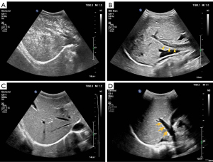 At present, the reason for the appearance of PHLE still needs to be determined. Several hypotheses have been reported in previous studies. One hypothesis suggests that the shell of microbubbles is destroyed initially. However, the microbubbles immediately combine to form large gas bubble conglomerates that are more stable (10). The higher dosage of injected SonoVue®, the larger the fused gas bubbles (8,9). Finally, these gas bubble conglomerates are trapped in the liver parenchyma, particularly along the portal vein branches. This hypothesis might explain the long time (more than 30 minutes) for which the hyperechoic spots remain in the liver, but it still has limitations in explaining some findings in our study. We found that patients with and without PHLE patterns did not differ in the injection dose of SonoVue®. The two patients showed tiny hyper-echoic spots with an injection dose of 3.0 and 5.0 mL, respectively. The remaining 11 patients showed diffuse hyper-echoic staining with an injection dose of 1.0 mL in two cases, 1.5 mL in one case, 2.0 mL in five cases, 2.5 mL in one case, and 3.0 mL in one case, and one case of 5.0 mL. Therefore, it seemed hard to find a correlation between the injection dose and the degree of PHLE in our study. Furthermore, SonoVue® is characterized as the “pure blood pool” contrast agent, so it is hardly taken up by Kupffer cells in the liver parenchyma.