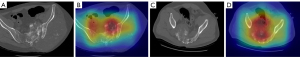 This study was conducted in accordance with the Declaration of Helsinki (as revised in 2013) and was approved by the Ethics Committee of Peking University People’s Hospital. The requirement for written informed consent for this retrospective analysis was waived. A total of 201 patients with pathologically confirmed pelvic and sacral OS or ES in Peking University People’s Hospital from June 2007 to June 2020 were retrospectively analyzed. All patients underwent CT examination within 1 month before the first operation. A total of 16 patients were excluded due to obvious artifacts on the CT images. Age, sex, maximal tumor size, tumor location (zones I–IV) (27), and the history of malignancy of the patients were also analyzed.