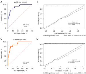 Validation of the nomogram and performance in patients with T1N0M0 breast cancer
