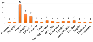 Selected features of resting-state functional magnetic resonance images are given in the Table 5. To assess which brain regions exhibit significant functional differences between the two groups, the features in Table 5 are classified according to their respective regions. This analysis is illustrated in Figure 3.