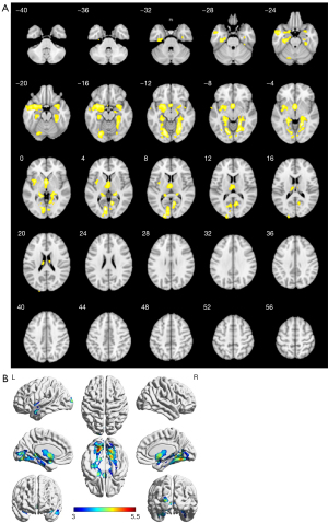 Brain regions with GMV changes were extracted, and SPSS partial correlation analysis was applied to assess the correlation between local GM volume changes and MoCA and MMSE scores. Further Spearman correlation analysis was performed to ascertain the correlation between MoCA scores in different cognitive domains and GMV in distinct brain regions. A P value <0.05 was considered statistically significant; r>0 was considered a positive correlation; and r<0 was considered a negative correlation.