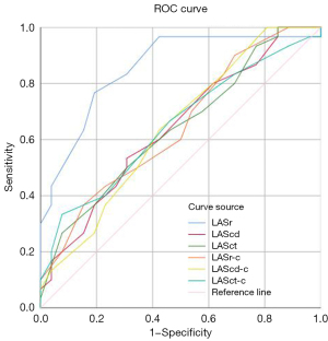Compared with the control group, the absolute values of LA function parameters LAEI, LAAEF, LAPEF, LATEF, LASr, LAScd, LASct, LASr-c, LAScd-c, and LASct-c in the case group decreased (P<0.05), as shown in Table 3.