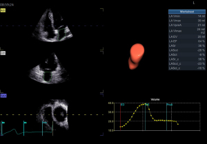 Aortic stenosis (AS) is one of the common valvular heart diseases, with its prevalence increasing with age (1). AS is a chronic progressive disease. Mild AS often presents without significant clinical symptoms and has a relatively favorable prognosis. Once severe AS patients develop symptoms, the 2-year survival rate is only 50%, and the prognosis is very poor (2). The most common symptoms of severe AS are exertional dyspnea and fatigue; however, these symptoms can be confused with other diseases (3). The clinical symptoms of patients with severe AS are associated with decreased aortic valve area, left ventricular (LV) wall hypertrophy, LV dysfunction, and left atrial (LA) enlargement (4-6). However, Stewart et al. showed that in addition to the severity of valve stenosis, LV mass, left ventricular ejection fraction (LVEF), and LV diastolic function were not predictive of heart failure symptom onset in AS patients (7). Therefore, recent studies have focused on the correlation between ejection fraction retention in patients with severe AS and the identification of heart failure symptoms. Conventional echocardiography commonly uses LVEF to reflect LV systolic function. However, patients with severe AS can have no obvious clinical symptoms or mild clinical symptoms for an extended time, but the long-term increased pressure load of the left ventricle can cause LV myocardial mechanical damage. In addition, LVEF is less sensitive in assessing LV systolic function when there is increased LV afterload. Although global longitudinal strain (GLS) can detect subclinical functional abnormalities of the myocardium, it also has the disadvantage of being afterload-dependent (8). Therefore, it is crucial to identify more precise indicators to determine the cardiac function in patients with severe AS, thereby guiding the optimal treatment strategy. In recent years, researchers have become increasingly interested in the role of the left atrium in regulating LV diastolic function and in determining the occurrence of heart failure symptoms. The relationship between LA dysfunction and heart failure symptoms has been confirmed in cases of heart failure with preserved ejection fraction and diastolic dysfunction, or in hypertrophic cardiomyopathy (9,10). Studies have confirmed that in patients with severe AS, LA enlargement and dysfunction can affect patient prognosis (11-13). O’Connor et al. showed that LA dilation in patients with severe AS does not necessarily reflect the intrinsic dysfunction of LA. When LA function is impaired, AS patients have more obvious heart failure symptoms and worse prognosis, which indicates that the assessment of LA function is crucial in patients with severe AS combined with heart failure (14). Thus, early, timely, and accurate assessment of LA function in patients with AS is of great significance for improving patient outcomes, alleviating clinical symptoms, and reducing mortality. The real-time 3-dimensional (3D) automatic left atrial quantitative technique (RT-3D Auto LAQ) technique overcomes the limitations of previous methods by enabling the simultaneous acquisition of LA volume and emptying rate parameters, as well as longitudinal and circumferential strain. This allows for an accurate assessment of LA function.