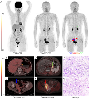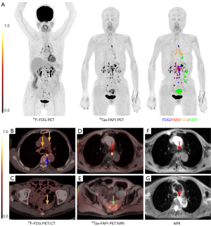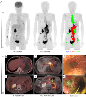 - Li C, Tian Y, Chen J, Jiang Y, Xue Z, Xing D, Wen B, He Y. Usefulness of [68Ga]FAPI-04 and [18F]FDG PET/CT for the detection of primary tumour and metastatic lesions in gastrointestinal carcinoma: a comparative study. Eur Radiol 2023;33:2779-91.