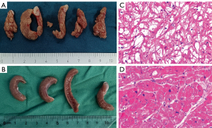 With patient positioned supine, a minithoracotomy was performed at the left ventricular apex, typically through the fifth intercostal space along the left midclavicular line. Double circumferential purse-string sutures with Teflon felt pledgets were placed at the apex, followed by an apical puncture and dilation. The device was introduced into the left ventricle via the apical access and advanced into the LVOT. Under TEE navigation, the tubular blade was deployed to excise the target hypertrophied myocardium. The first resection was performed at the basal anterior septum, located 5–10 mm beneath the aortic valve. The resected myocardium tissue, along with the device, was then retrieved from the ventricular chamber. Following the first resection, an isoproterenol provocation test was performed to evaluate the residual LVOT gradient. Additional resections were performed as needed to achieve optimal reduction in LVOT gradient, SAM grade, and MR severity, all under real-time TEE guidance. Resected myocardial tissues were weighed and submitted for histological analysis.
