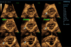 Firstly, the participants were instructed and trained in Valsalva and anal contraction maneuvers. The patient was asked to empty their bladder 20 minutes before the examination. The residual urine volume measured by two-dimensional (2D) ultrasound was about 50 mL during the examination (5), and the patient was in the lithotomy position. Ultrasound image acquisition and data measurement were performed. All procedures were performed by practitioners trained in pelvic floor ultrasound, the data were measured three times, and the maximum value across the three trials was selected as the representative measurement for each parameter, as peak strain most accurately reflects pelvic floor vulnerability to prolapse.