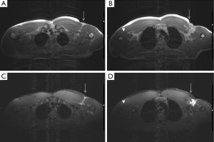 In comparison to US, MR imaging is less operator dependent, facilitates a more global assessment of the entire chest, and enables better differentiation of tendon tissue from tissues affected by trauma. It is the imaging method of choice when the diagnosis is not clear, and may avoid surgical delays particularly when surgery is indicated. Different MR imaging protocols may be suitable for imaging of thoracic wall muscles. T1-weighted sequences are good for evaluating the anatomy but lack sensitivity in the detection of fluid, with exception of some chronic hematomas due to very short T1 values (and corresponding brightness on T1-weighted images). Fluid-sensitive MR imaging sequences such as STIR, T2-weighted imaging with fat saturation, and proton-density—weighted imaging with fat saturation are essential for detecting increased fluid signal intensity induced by a traumatic process.