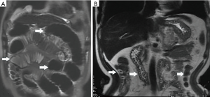 - Tolan DJ, Greenhalgh R, Zealley IA, Halligan S, Taylor SA. MR enterographic manifestations of small bowel Crohn disease. Radiographics 2010;30:367-84. [Crossref] [PubMed]