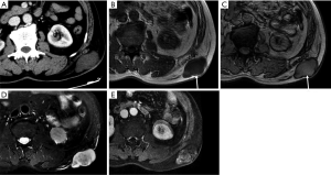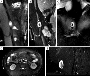 - Gupta P, Potti TA, Wuertzer SD, Lenchik L, Pacholke DA. Spectrum of Fat-containing Soft-Tissue Masses at MR Imaging: The Common, the Uncommon, the Characteristic, and the Sometimes Confusing. Radiographics 2016;36:753-66. [Crossref] [PubMed]