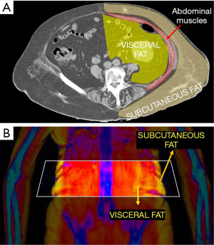 - Pickhardt PJ, Jee Y, O’Connor SD, del Rio AM. Visceral adiposity and hepatic steatosis at abdominal CT: association with the metabolic syndrome. AJR Am J Roentgenol 2012;198:1100-7. [Crossref] [PubMed]