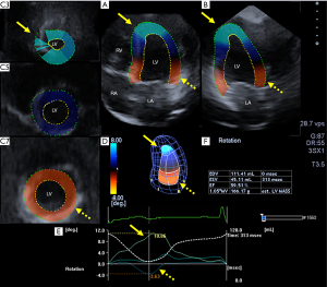 - Andrade J, Cortez LD, Campos O, Arruda AL, Pinheiro J, Vulcanis L, Shiratsuchi TS, Kalil-Filho R, Cerri GG. Left ventricular twist: comparison between two- and three-dimensional speckle-tracking echocardiography in healthy volunteers. Eur J Echocardiogr 2011;12:76-9. [Crossref] [PubMed]