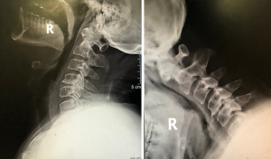 In our analysis, some significant imaging findings were noteworthy. One X-ray depicted the posterior arch of atlas approaching the occipital bone. In several other cases, the distance measured between the intervals was extremely small, and the posterior arch of atlas was extremely close to the occipital bone, despite the location of cervical positions. We believe that this phenomenon resulted from serious posterior atlanto-occipital stiffness of the craniovertebral junction, which could develop at different ages and lead to various manifestations. In young patients with suggested radiographic posterior atlanto-occipital stiffness, imaging changes mostly manifested in cervical curvature straightening, which warrants the need to address the future risk of spondylotic myelopathy. The older patient with the same stiffness disease showed more imaging changes, including bony hyperplasia, smaller foramen intervertebral changes, and narrow intervertebral spaces, which were the result of stress changes in the upper cervical spine for several years. The small distance resulting from extreme posterior atlanto-occipital stiffness requires future evaluation in a large sample size study, as well as additional studies on the pathological mechanisms.
