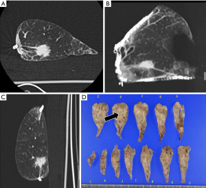 - Troschel FM, Gottumukkala RV, DiCorpo D, Mario J, Ott HC, Wright CD, Muniappan A, Lanuti M, Yang K, Shepard JO, Nardi V, Michaelson JS, Hariri LP, Fintelmann FJ. Feasibility of Perioperative Micro-Computed Tomography of Human Lung Cancer Specimens: A Pilot Study. Arch Pathol Lab Med 2019;143:319-25. [Crossref] [PubMed]
