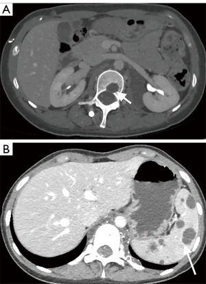 - Zhang C, Chen X, Wen T, Zhang Q, Huo M, Dong J, Shen WB, Wang R. Computed tomography lymphangiography findings in 27 cases of lymphangioleiomyomatosis. Acta Radiol 2017;58:1342-8. [Crossref] [PubMed]